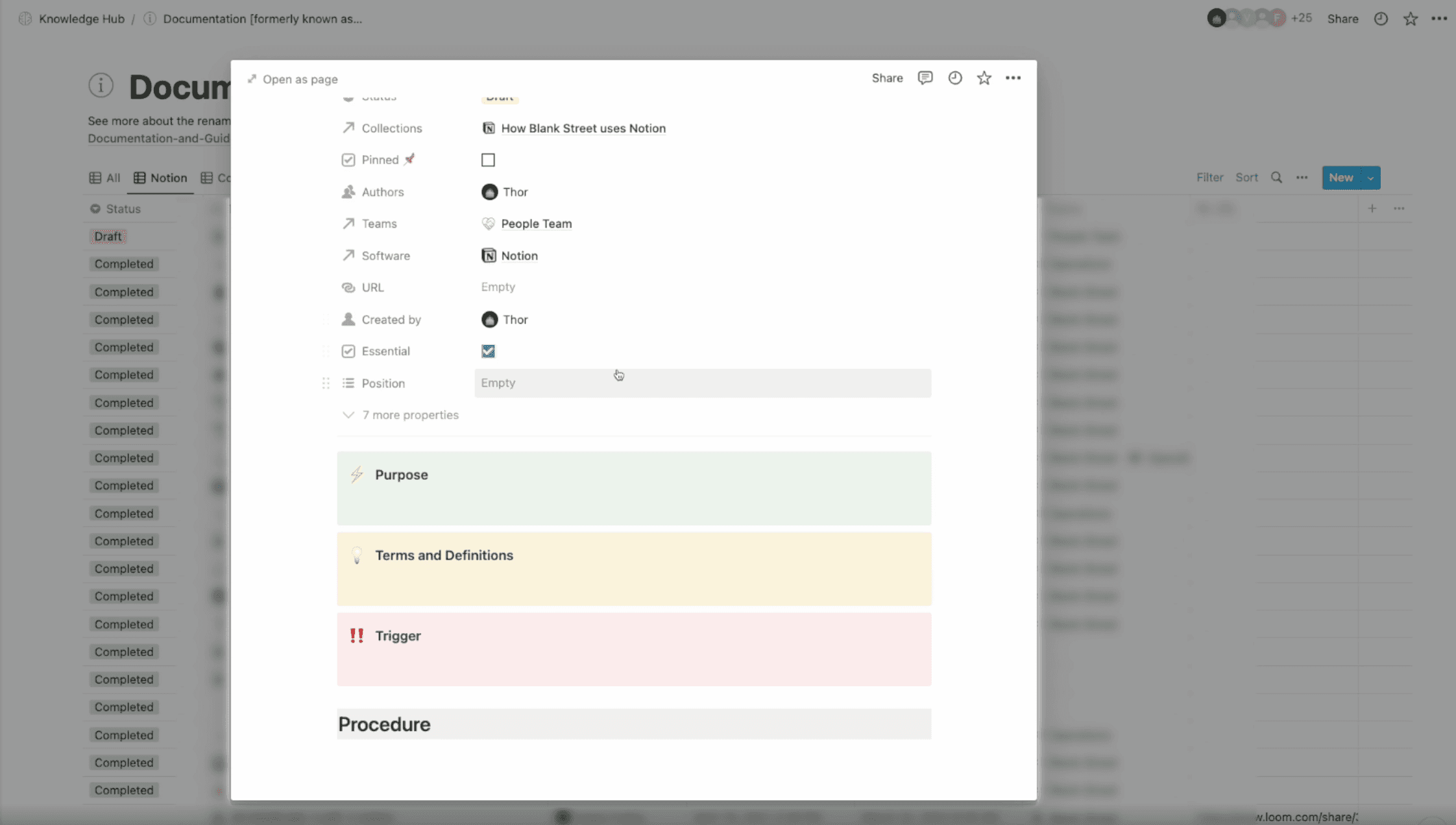 Blank Street also needed a process and a space to document its policies, best practices, procedures, and technical documentation, so all employees could self-serve this accumulated knowledge quickly and easily. We revamped their Documentation database and built a Collections database to be able to organize their important docs into groups of related information (such as "Blank Street's Notion Guides" or "Blank Street's Travel Policies").