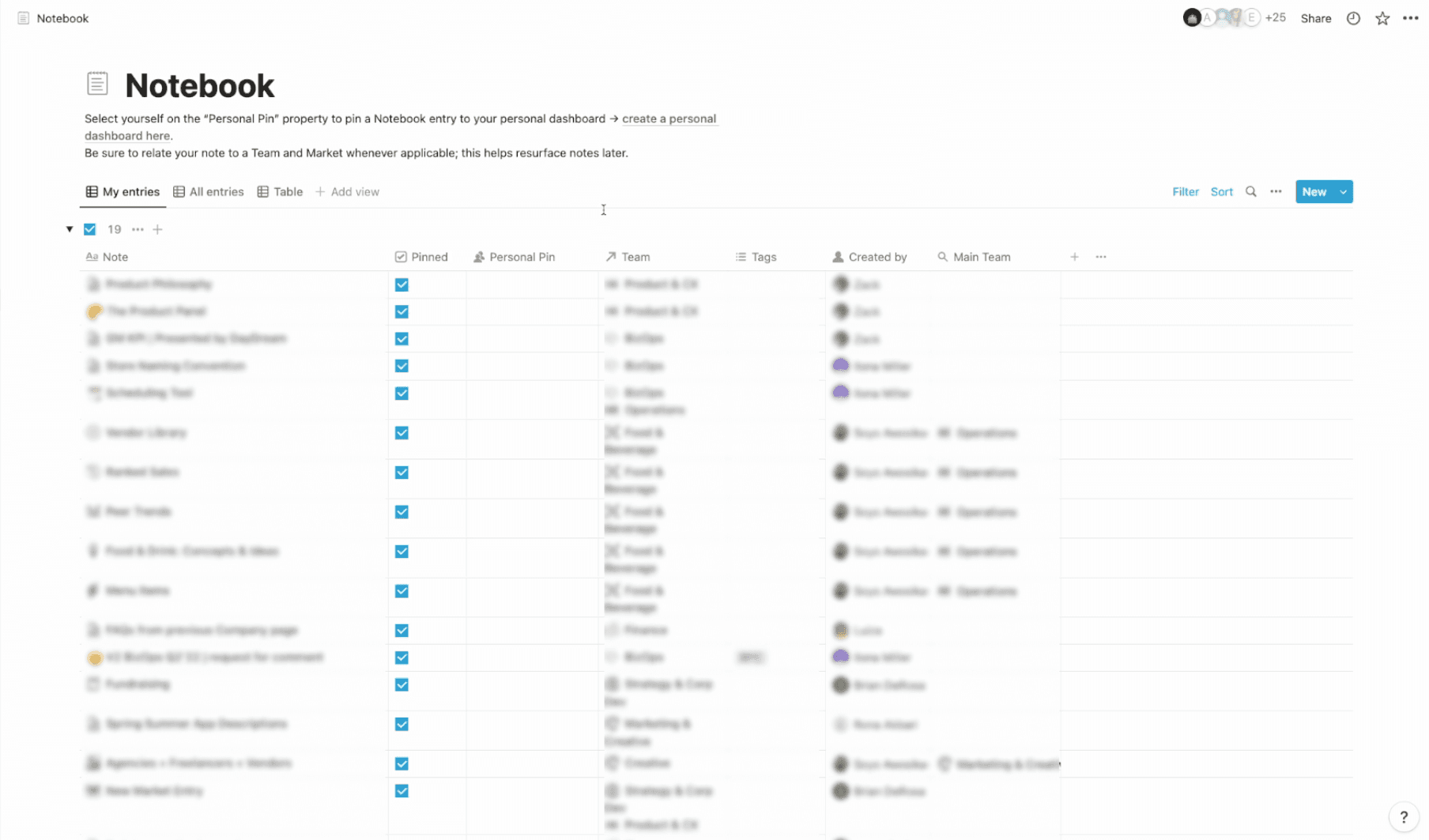 The leadership team also needed a way to take field notes when they visited their various locations. This information was already being collected; however, it needed more visibility across the company. A clearer structure was necessary for the team to follow when taking these notes. To solve this issue, we built a Shift Notes database and template that one person would be responsible for maintaining while others added information to it.